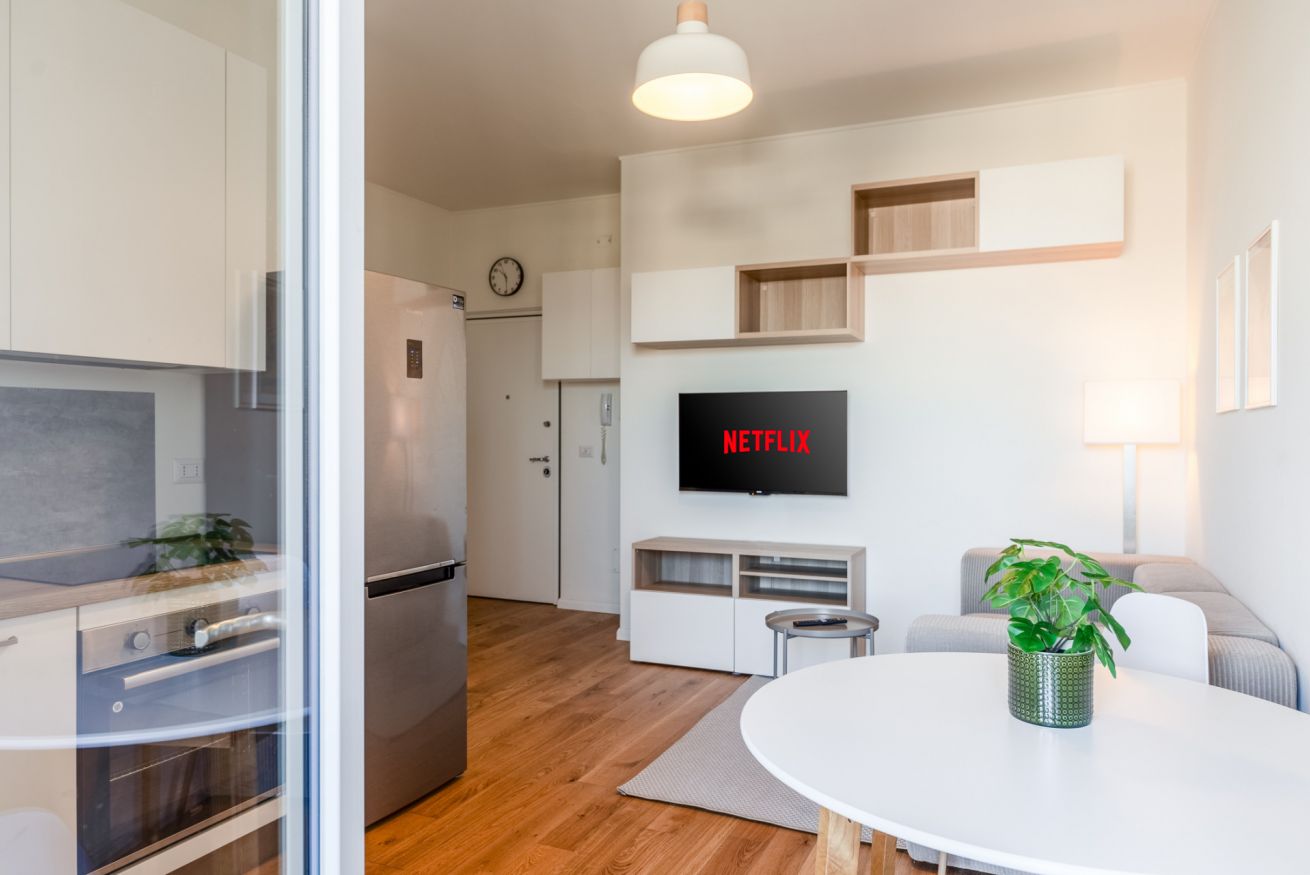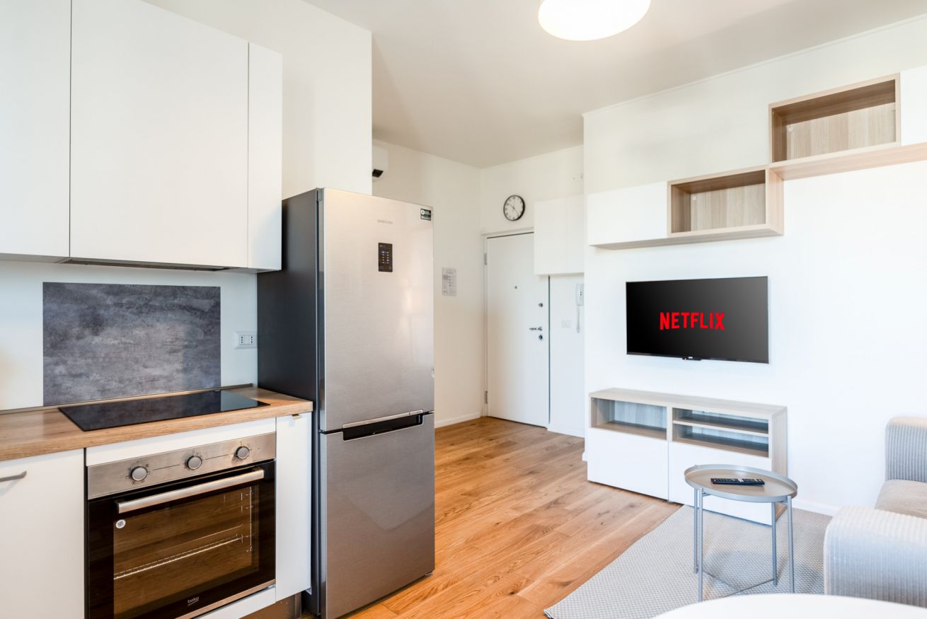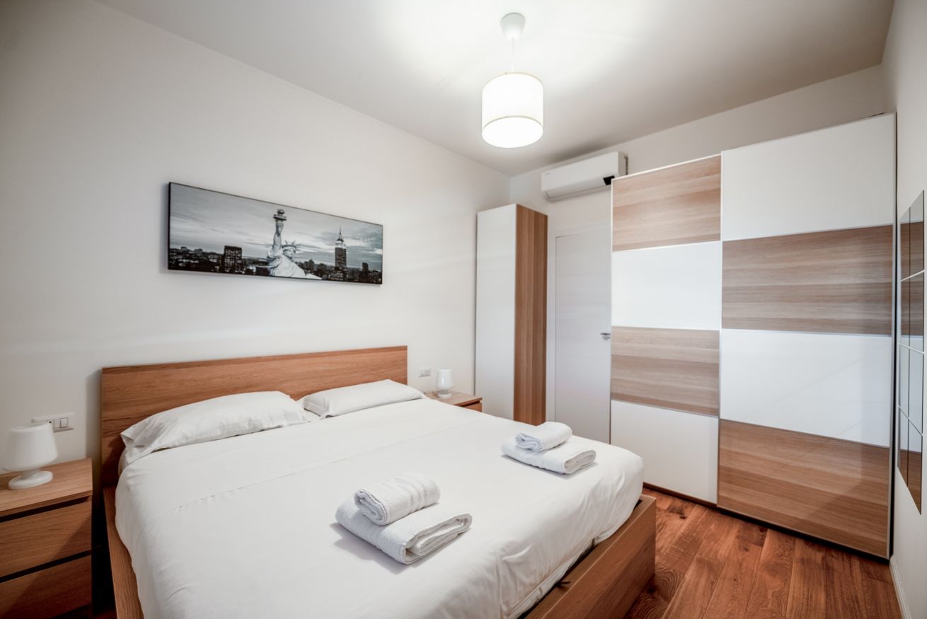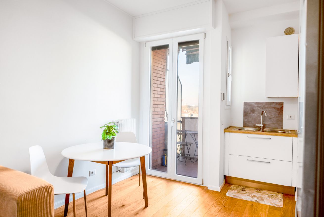 Hai mai desiderato svegliarti con la luce che filtra attraverso una finestra ad un piano alto mentre la città si prepara al giorno? Questo bilocale offre proprio questo: un rifugio luminoso e silenzioso, ideale per coppie o viaggiatori solitari. La camera da letto, accogliente e ben arredata, promette notti di riposo profondo. Il soggiorno, con angolo cottura a vista, è il luogo perfetto per iniziare la giornata con una colazione preparata con cura. Una piccola terrazza ad L offre uno scorcio sulla città e San Siro, invitando a una pausa all'aria aperta. Con aria condizionata, Wi-Fi e una posizione strategica – a pochi passi dalla metro M5 Segesta e a breve distanza dallo Stadio San Siro – questo appartamento è il punto di partenza ideale per esplorare Milano.